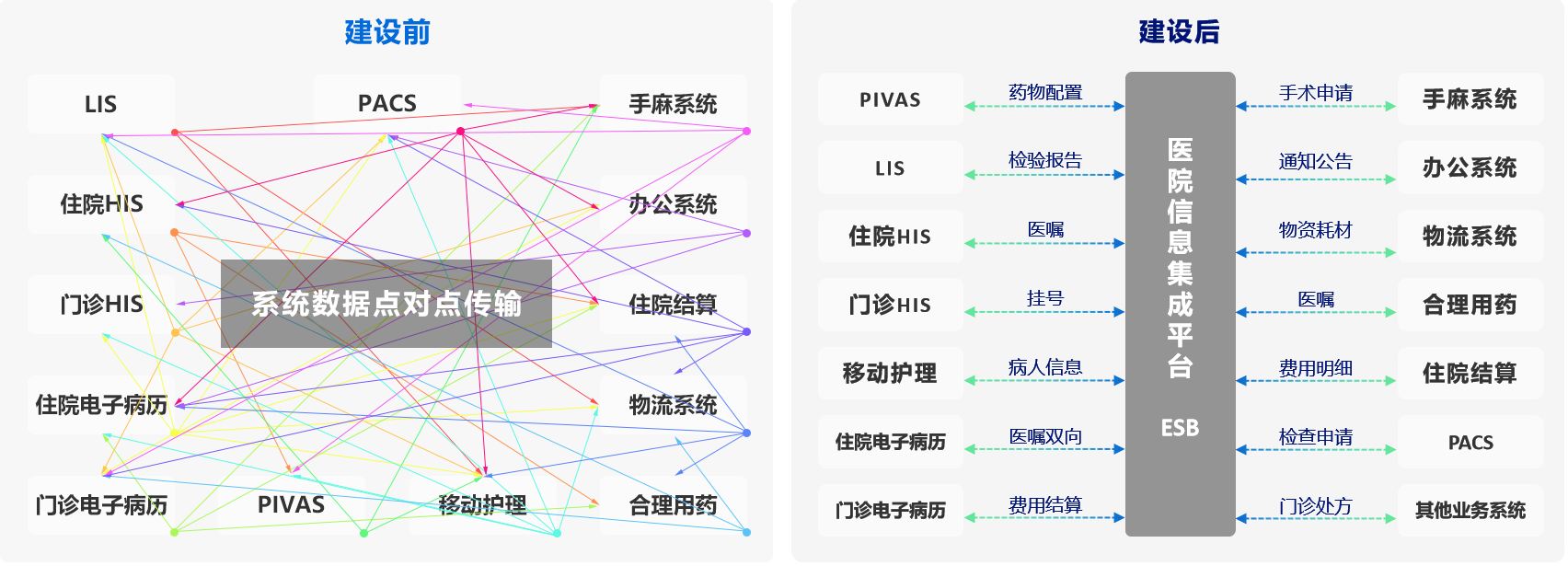 通过建设数据总线ESB集成引擎,从“紧耦合”模式变为“松耦合模式”,实现业务系统集成,打破机构内“信息孤岛”和“信息烟囱”。