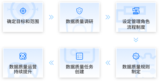 从数据到完整性、唯一性、准确性、有效性、及时性和连续性六个维度对数据质量进行检测,对问题数据快速发现和分析,从而实现数据质量问题的全面筛选和评估。数据质量以可视化方式实现数据质量的全局掌握和精细管理,为后续的数据分析和处理提供可靠的数据保障。