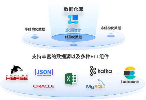 • 支持半结构化、结构化、非结构化的多种数据源;